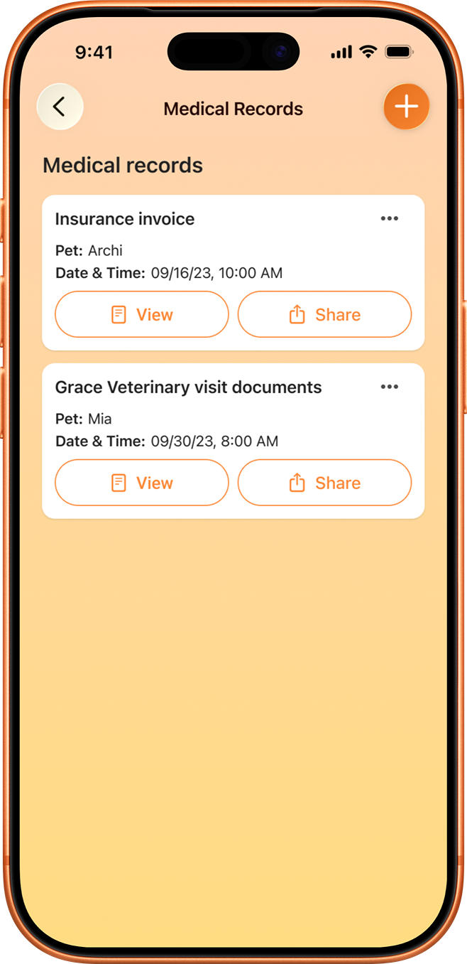 Store vaccination info, lab notes, prescriptions, and attachments.