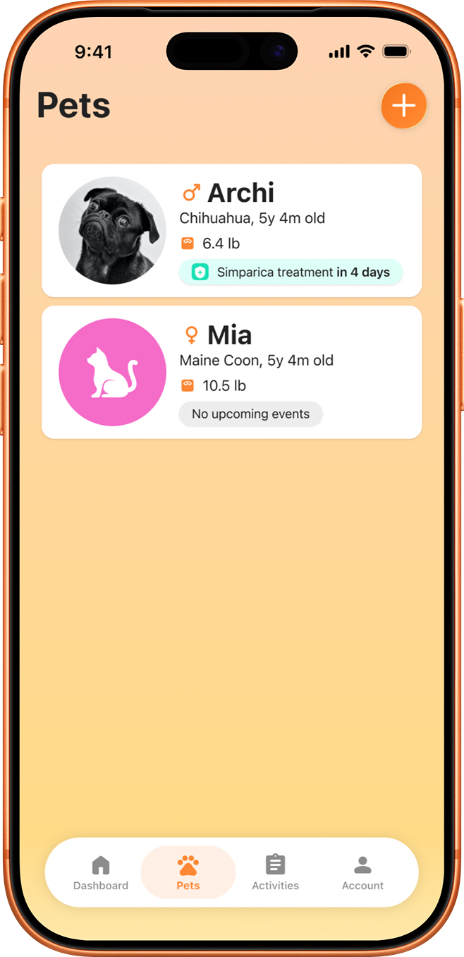 Log weight, symptoms, treatments, grooming, and daily care — so you can spot patterns over time.